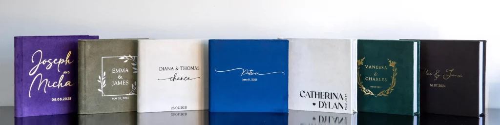 Kapak seçeneklerinde kadife, süet veya minimalist keten dokular arasından seçim yapılabiliyor. Baskı seçeneklerinde ise altın, gümüş veya rose gold folyo tercih edebilirsiniz.